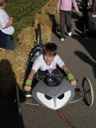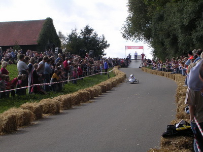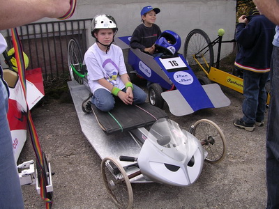 alte Kinderwagenräder befanden. Die etwas porösen Vollgummiringe dieser Räder wollten partout nicht auf den Felgen bleiben, was der Höchstgeschwindigkeit sehr abträglich war.